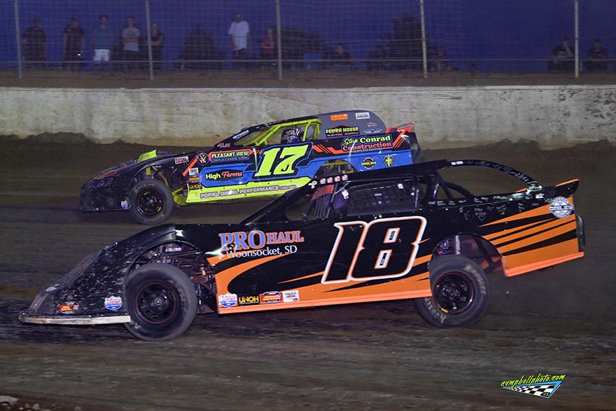 A Feature (20 Laps): 1. 17N-Dillon Nusbaum[2]; 2. 114-Clayton Bryant[6]; 3. 22T-Tony Anderson[3]; 4. 9C-Troy Cattarene[7]; 5. 25-Josh Lolmaugh[12]; 6. 65-Todd Sherman[8]; 7. 21C-Drew Charlson[4]; 8. 16-Jeff Koz[11]; 9. 463-Daniel Sanchez[1]; 10. 4-Jason Kinney[14]; 11. 5X-Jerry Bowersock[18]; 12. 1-Randy Giroux[15]; 13. 82-Dalton Lane[9]; 14. 82B-Brennan Sherman[16]; 15. 9PG-Percy Gendreau[5]; 16. 57-Jeffery Jessup[20]; 17. 0-Sean Verwys[10]; 18. 71T-Chris Hicks[19]; 19. 34X-Shane O'Connor[17]; 20. 35-David Stremme[13]