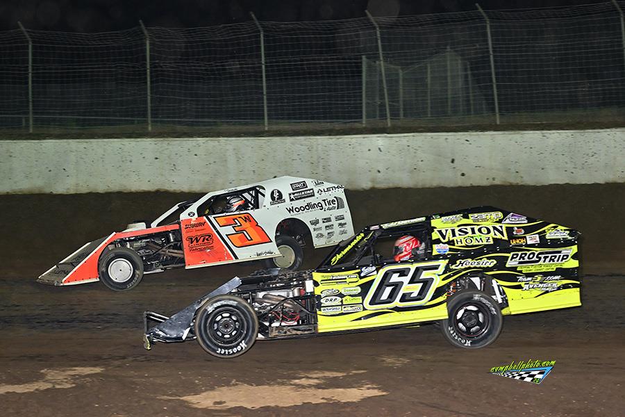 Wrapping up racing action were the DIRTcar UMP Modifieds with their 20 lap feature event. No. 65 Todd Sherman, and No. 01 Brayden Weller would lead the field to the green flag, with Sherman grabbing the initial lead. No. 16 Jeff Koz would claw his way to second on lap 2 with No. 3W Dylan Woodling making his way to third. Koz would power his way to the lead on lap 8, but would lose the lead just 2 laps later, as Woodling pulled a slide job on lap 10 to take lead. Koz would be forced to pull off with mechanical woes a couple laps later. Woodling would cruise to victory over No. 21C Drew Charlson, Todd Sherman, No. 36 Brandon Vaughan, and No. 82 Brennan Sherman would finish fifth.