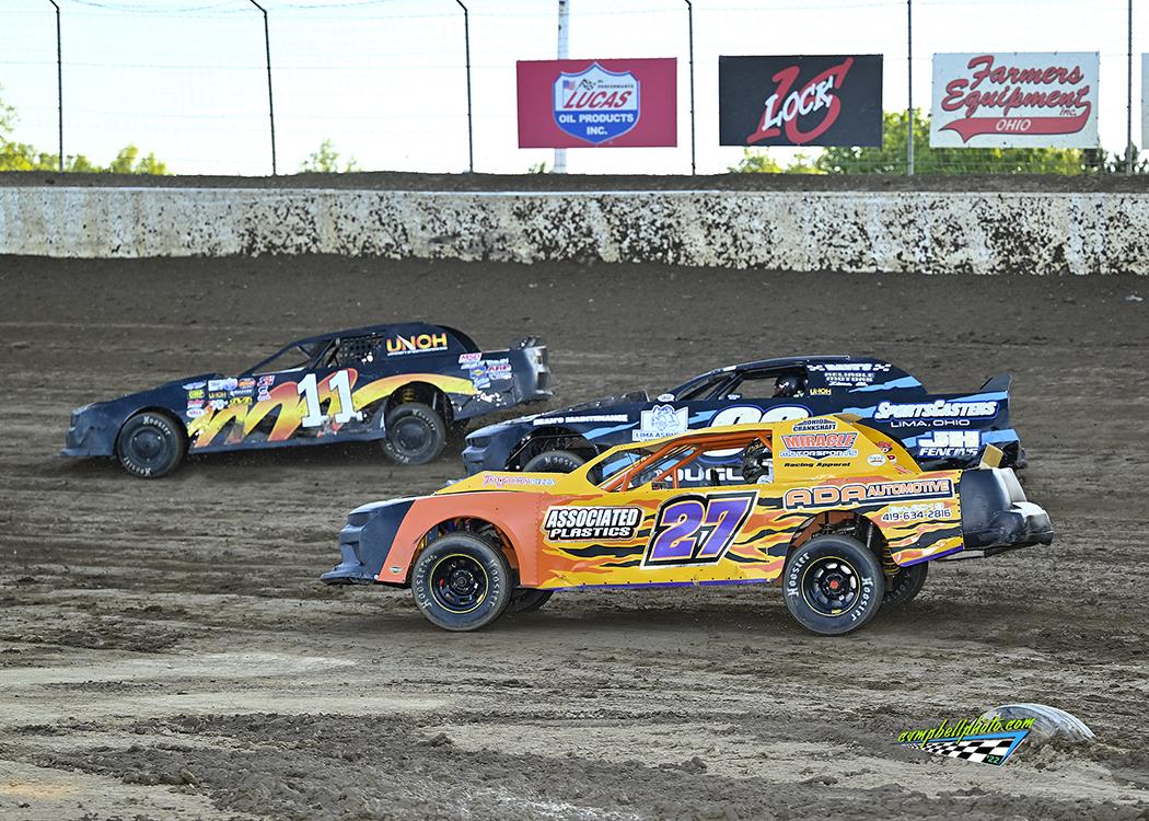Wrapping up feature racing were the Lock Sixteen Thunderstocks in their 15 lap A Main. No 74 Craig Dippman and No. 1W Mark Wooten would bring the field to the initial green flag, with Dippman grabbing the early lead. Multiple cautions marred the stock car feature, with Richmond Indiana’s Jeff Matheny surviving to pick up the win over Dippman. No. 25 Nick Bowers would finish 3rd, No. 72 Wayne Gibson 4th, and No. 22T Tony Anderson would complete the top 5.