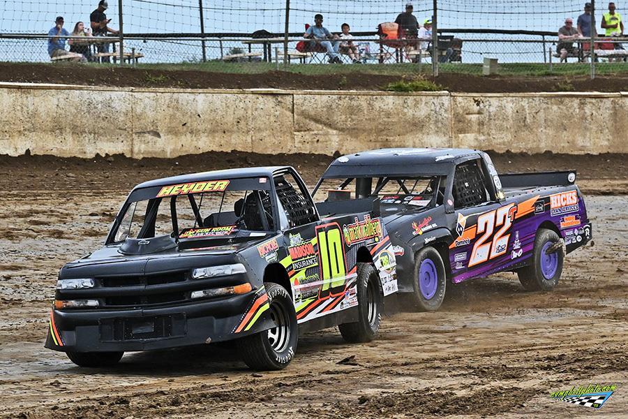 The ever-competitive Dirt Track Truck Series closed out their points season with a 12-lap main event that saw Rolly Heyder pick up his third straight Limaland win in the division. Heyder powered the No. 10 truck past brother Joey Heyder and Tony Anderson to grab the checkered flag from the fourth starting spot.