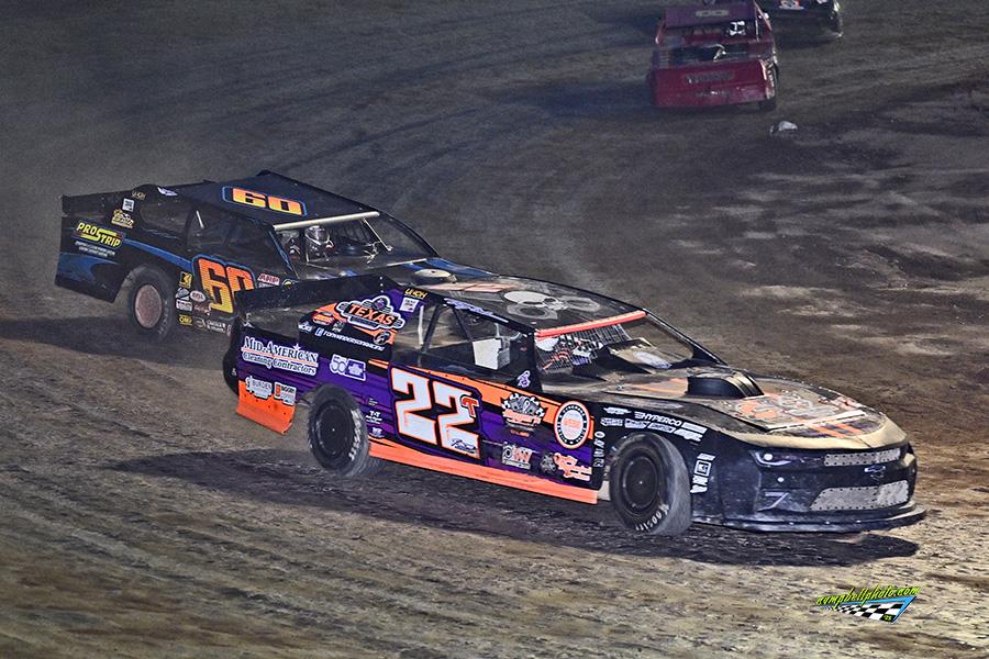 A Feature 1 (15 Laps): 1. 22T-Tony Anderson[5]; 2. 60-Todd Sherman[6]; 3. 8-Zach Rush[3]; 4. 17H-Devon Helmig[4]; 5. 18-Jarrod Klay[9]; 6. 1-Parker Derks[8]; 7. 01-Max Stetler[2]; 8. 29C-Chris Bitters[7]; 9. 92-Brandon McDaries[11]; 10. 1W-Mark Wooten[10]; 11. 27X-Robert Tuttle[14]; 12. 00-Paden Hines[12]; 13. 7-Dan Wooten[1]; 14. 72-Skyler Knox[13]; 15. (DNF) 82-Chris Douglas[16]; 16. (DNF) 26-Justin Long[15]